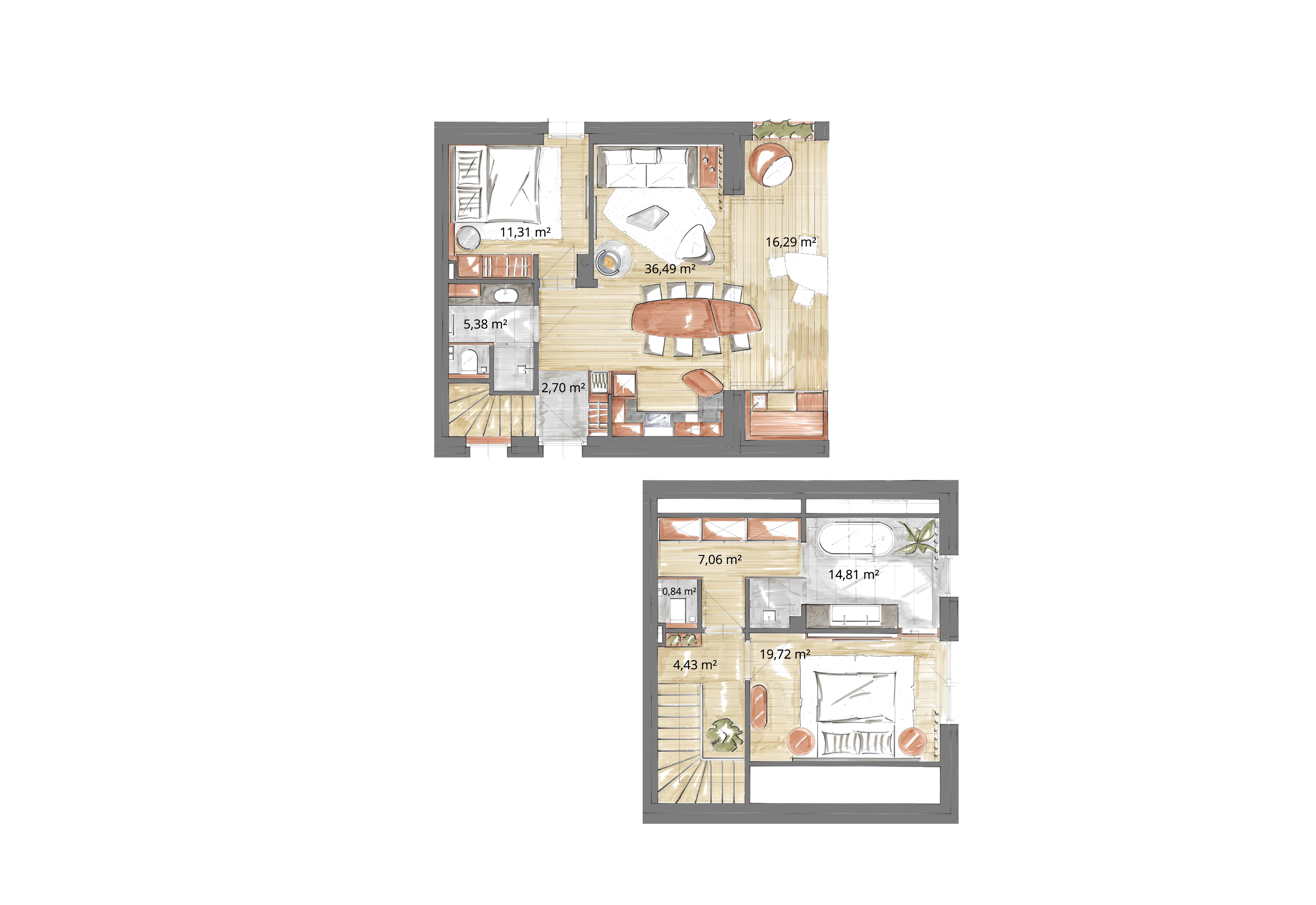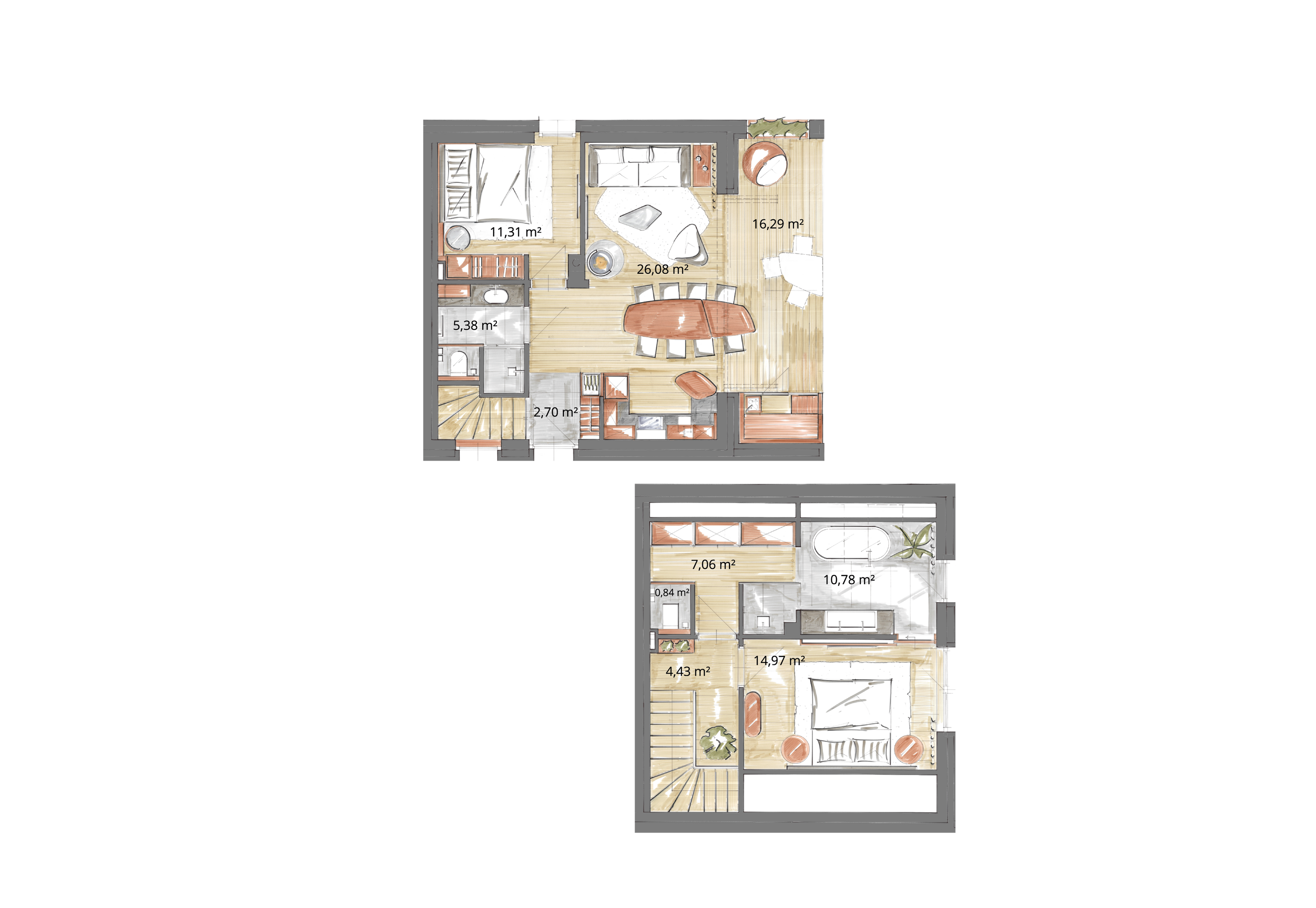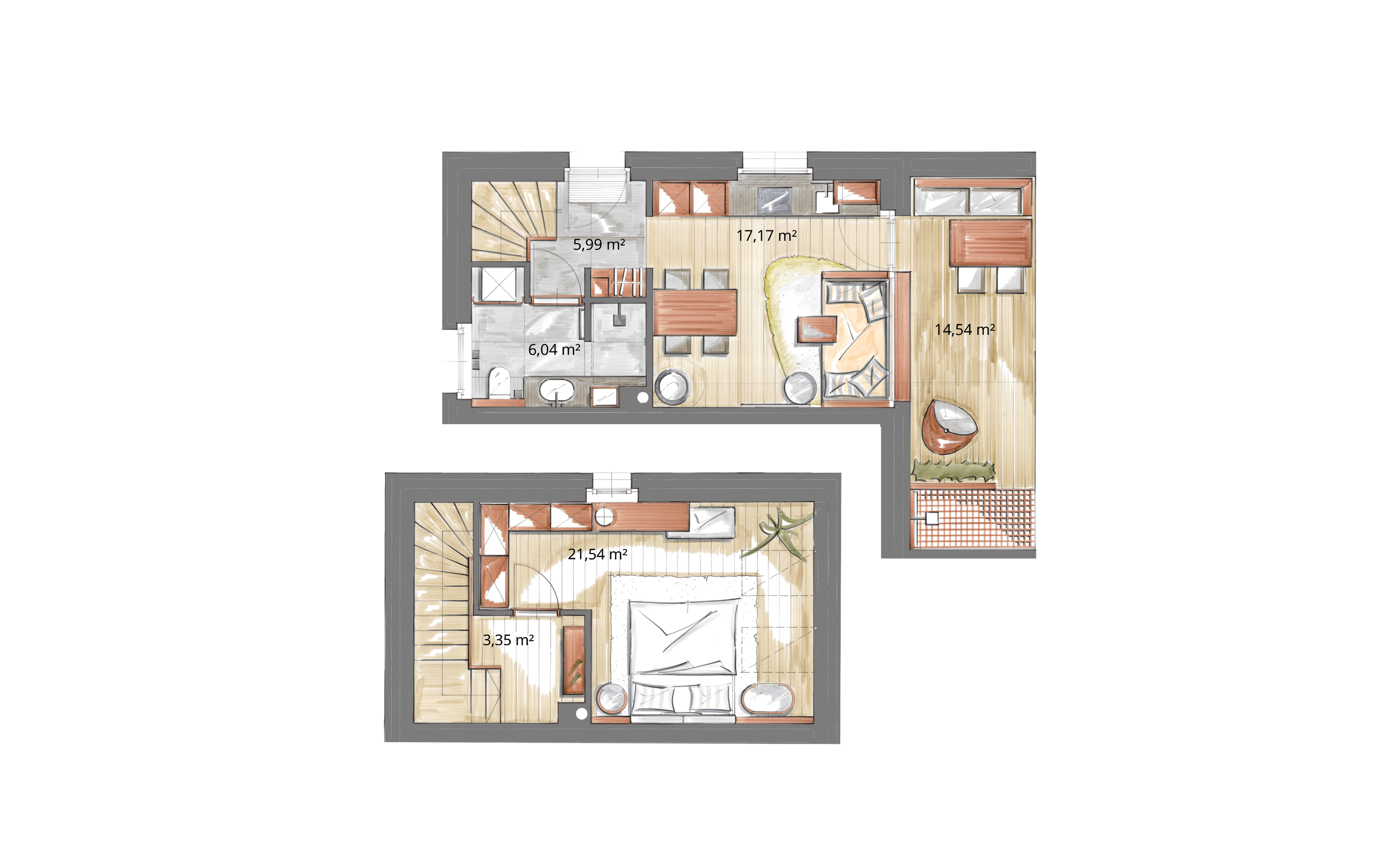 | 2 | 43,00 m² | 14,54 m² |